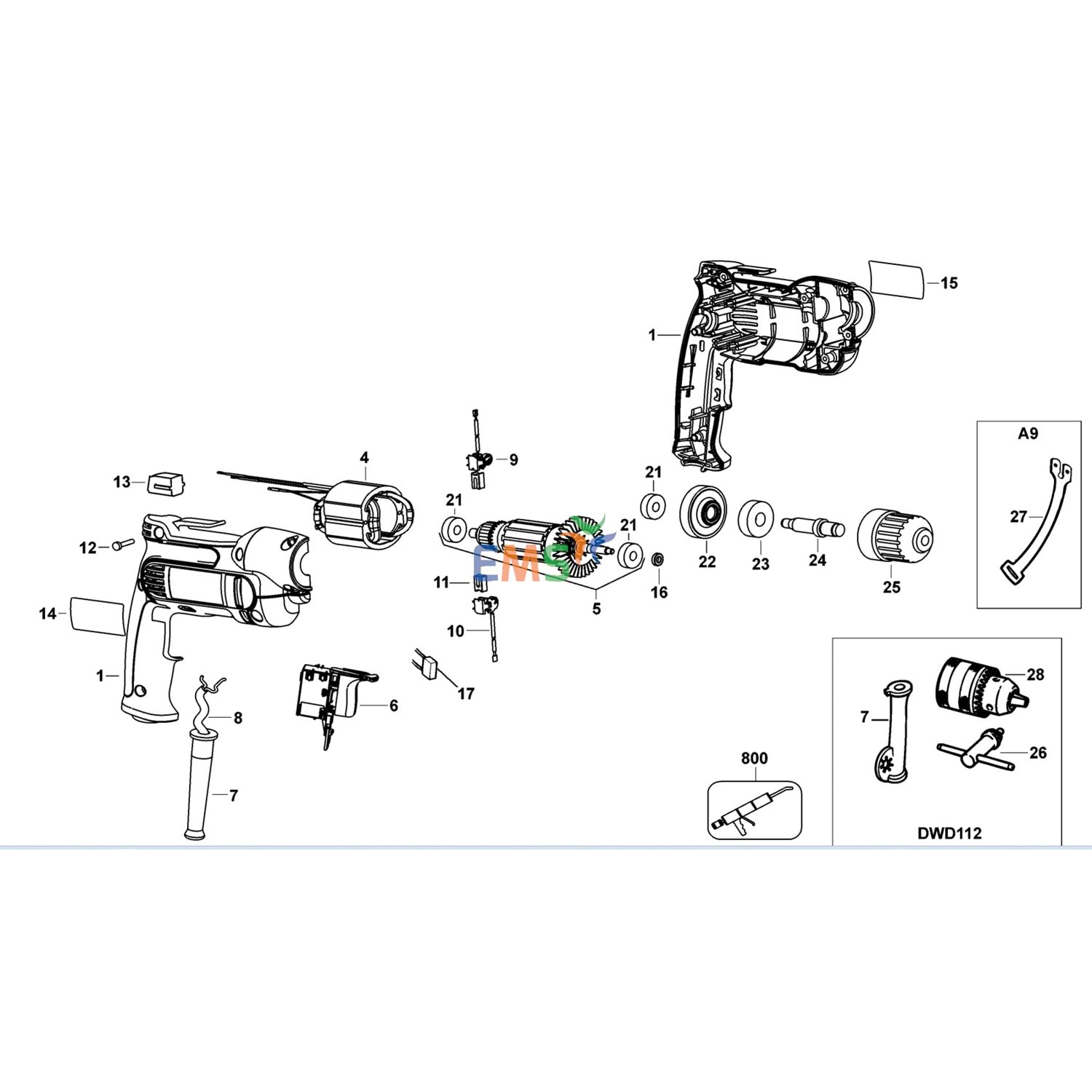 Dewalt DWD112 Mandren Anahtarlı 10mm 330033-39